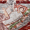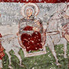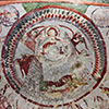 Die roten und grünen Fresken stammen vom Ende des 9. Jahrhunderts. Einmalig sind die aus dem Tuff herausgearbeiteten runden Ornamente. Diese Kirche wurde noch bis 1922 benutzt.
